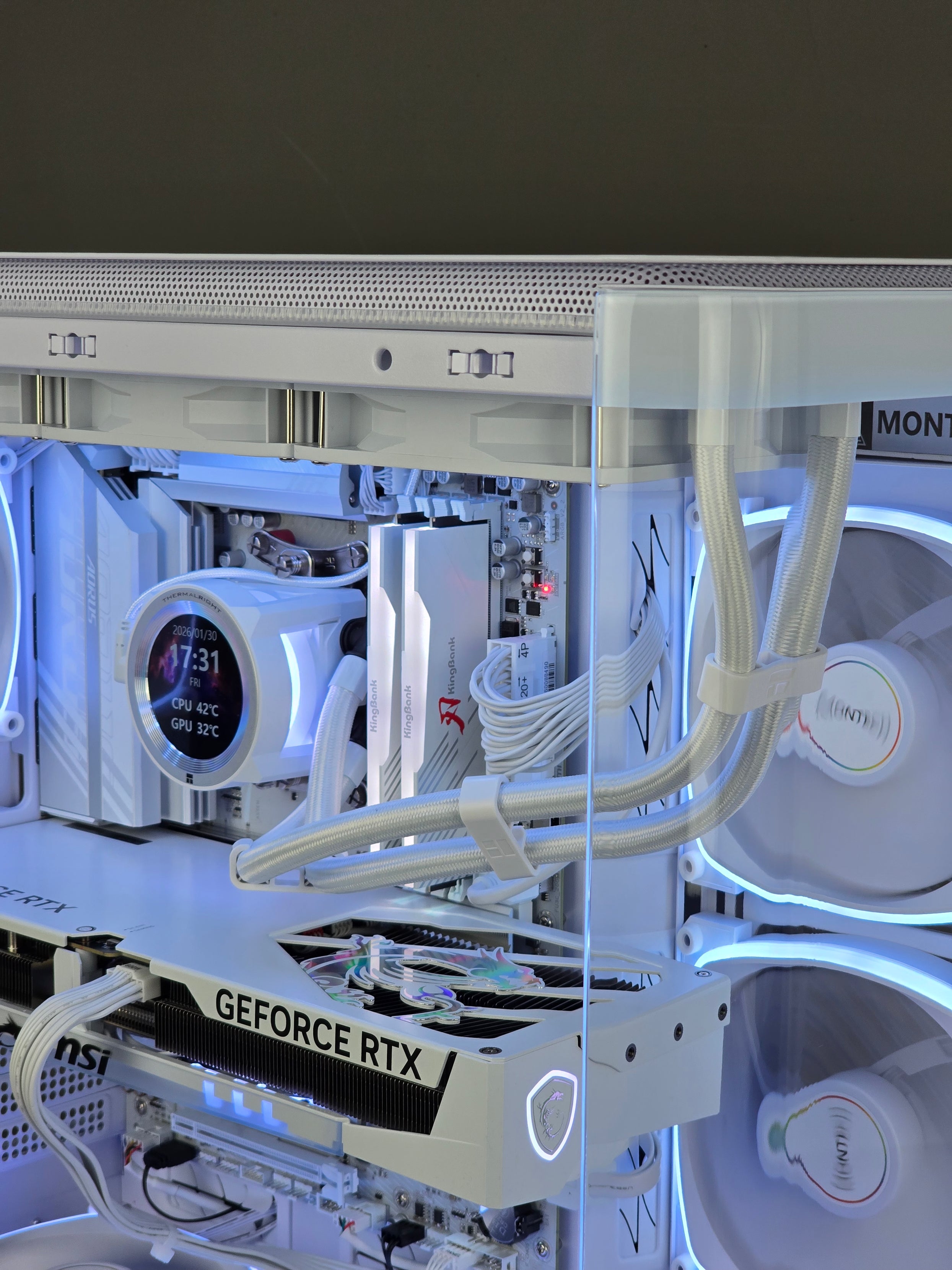 Housed in the elegant Montech King 95 Pro dual-chamber mid-tower case, featuring excellent airflow and a clean white finish, and powered by an ATX 3.0 / PCIe 5.0 ready 850W 80+ Gold fully modular PSU, SNOW White 2.0 perfectly balances beauty, performance, and reliability.